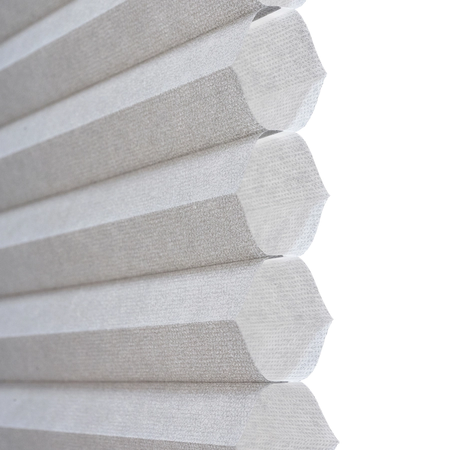- 1-in Light Filtering Cellular Shade made of semi-opaque recycled fabric provides a clean, modern look and softly filters light