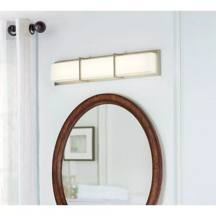 - At 27-in in length, this vanity light bar will work best with large vanities, measuring 30-in or longer