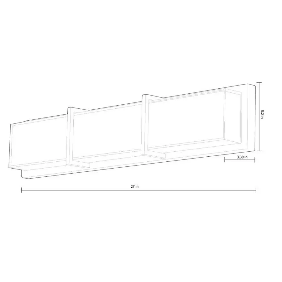 - Fixture measures 27-in W x 5.2-in H x 3.38-in D. Backplate measures 5.2-in W x 0.94-in H