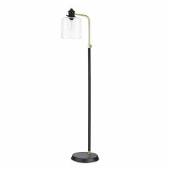 Allen + Roth 58-inH Painted Black With Antique Brass Down Bridge Floor Lamp With Clear Glass Shade